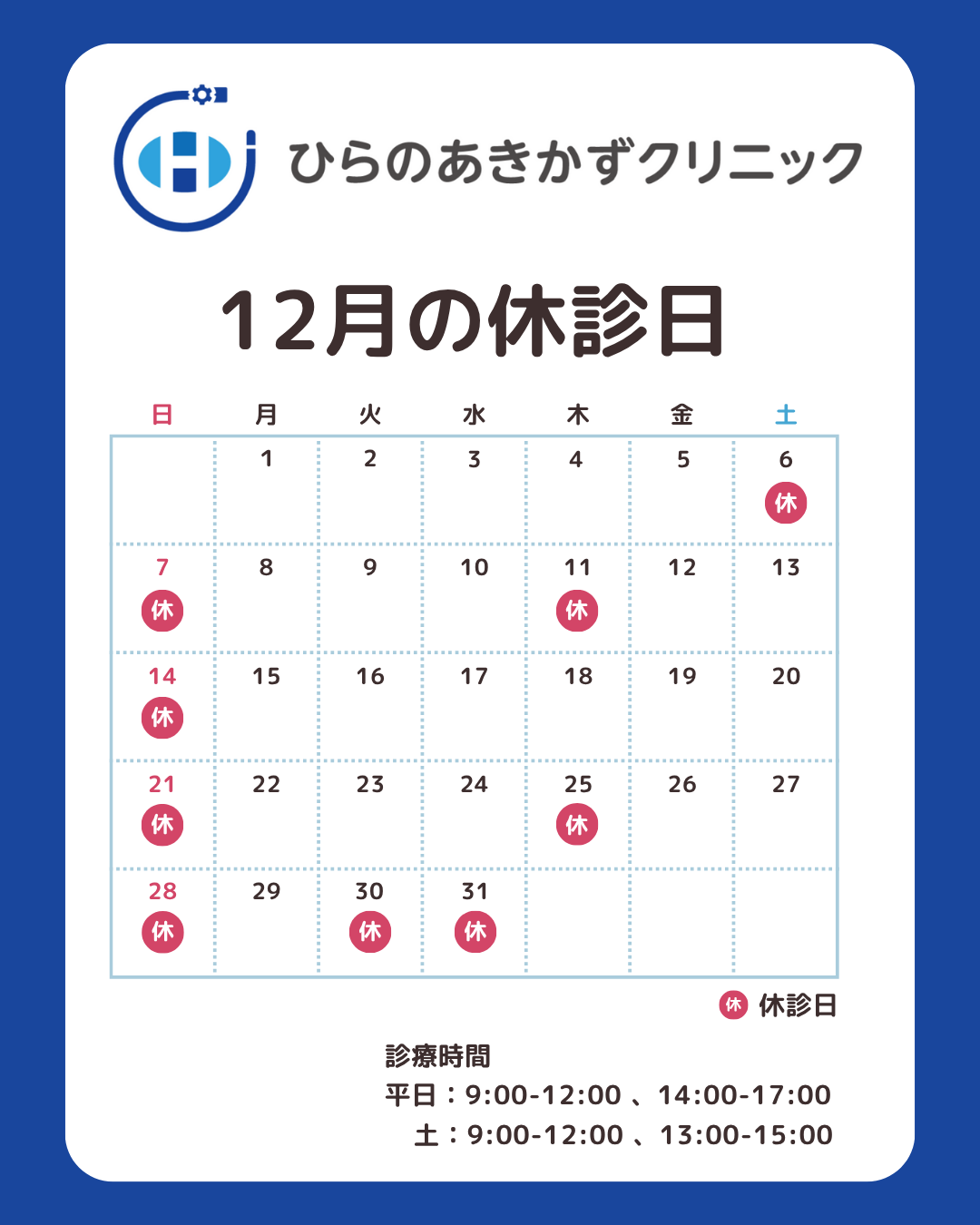 令和7年12月30日~令和8年1月4日も休診とさせていただきます。